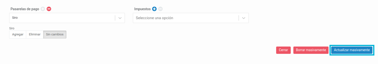 - Presionar «Actualizar masivamente» para completar el proceso.