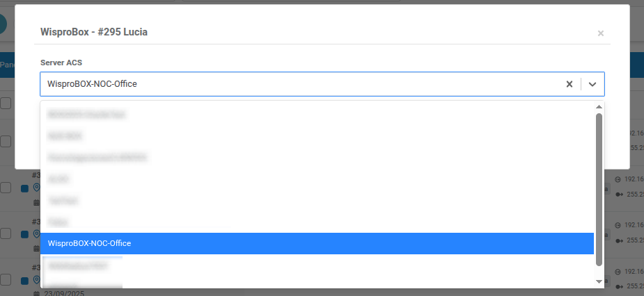 Al asignar un WisproBOX a la ONT, se creará automáticamente la configuración sobre la OLT y ONT. Luego de haber realizado esta configuración, tras unos minutos se deberá de ver disponible la ONT en el servidor ACS.