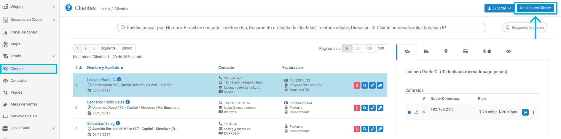 - Hacé clic en Crear nuevo cliente ubicado en el margen superior derecho.