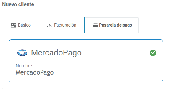 - Seleccionar la pasarela de pago que tendrá el cliente al crearlo.