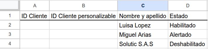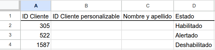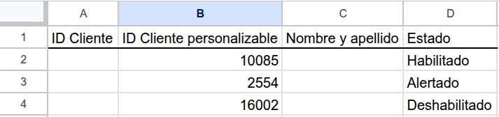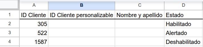La idea es que el sistema pueda leer un archivo .CSV que contenga identificadores de clientes y el estado que se desea asignar a cada uno.