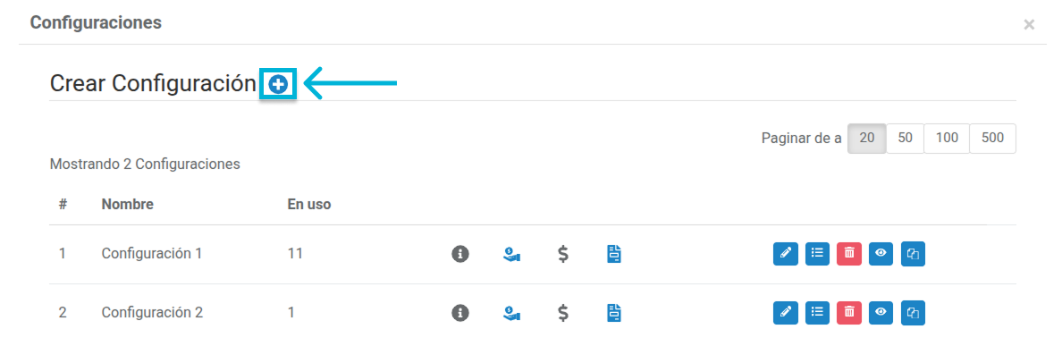 El sistema trae por defecto una configuración, puede crear nuevas o editar las existentes.