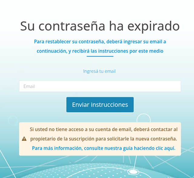 Proceso de restablecimiento de contraseña expirada