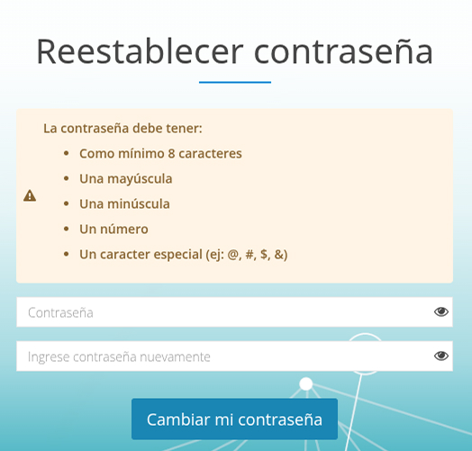- En el formulario, ingresar la nueva clave cumpliendo con las políticas de seguridad: