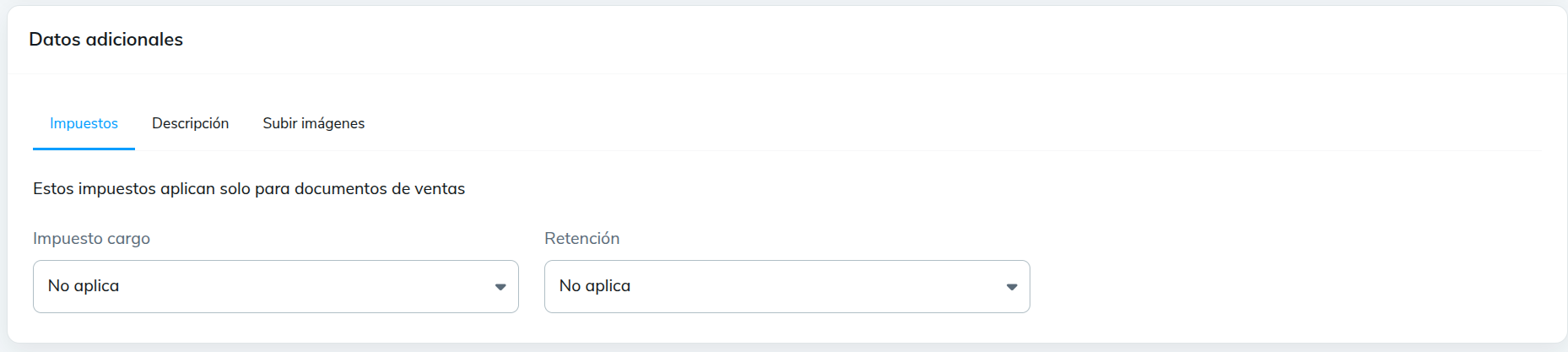 - Impuestos cargo: No aplica
