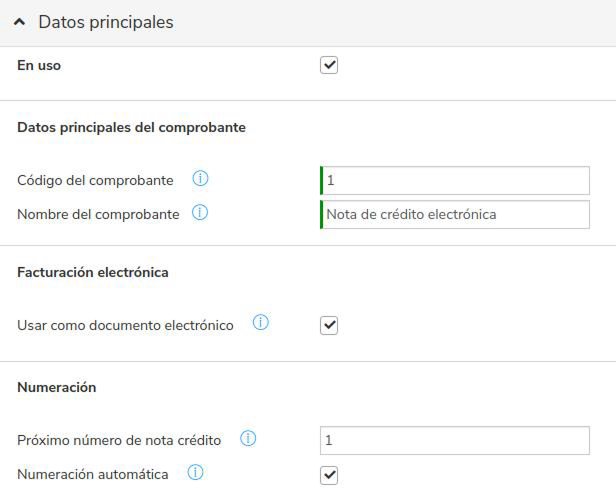 La configuración del comprobante debe coincidir con la que se detalla a continuación. En caso contrario, podrán producirse errores al momento de informar o emitir facturas.