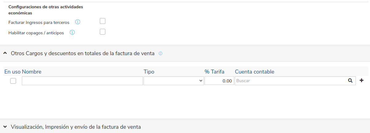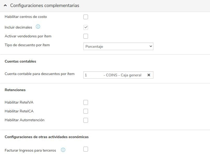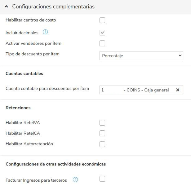 - Tipo de descuento por ítem: Porcentaje Habilitar ReteIVA: ⬜