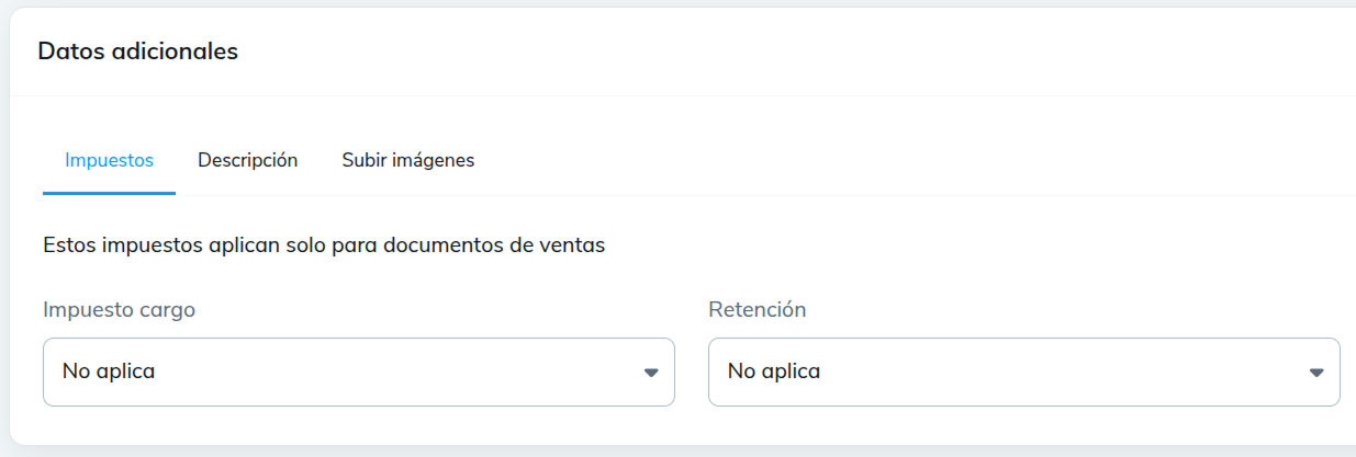 - Impuestos cargo: No aplica