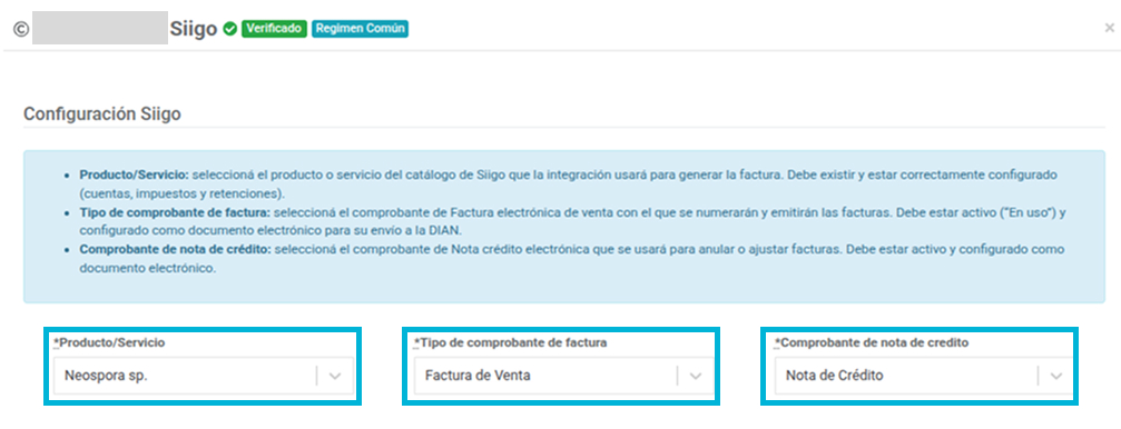 A continuación Capturas de pantalla de como debe quedar la configuración en SIIGO: